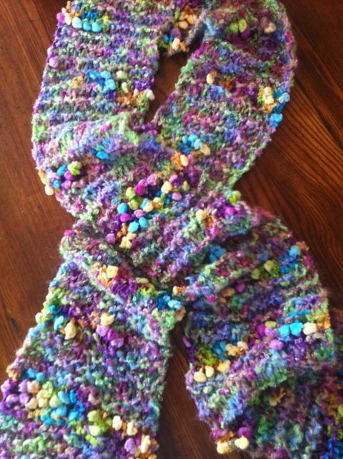 These scarves are individually custom made based on client’s color preference. They use two to three difference yarns mixed in randomly. They are bright, cheerful and very fun! Contact me if you want to order a truly unique scarf that no one else in the world will own! (SOLD 48 dollars)